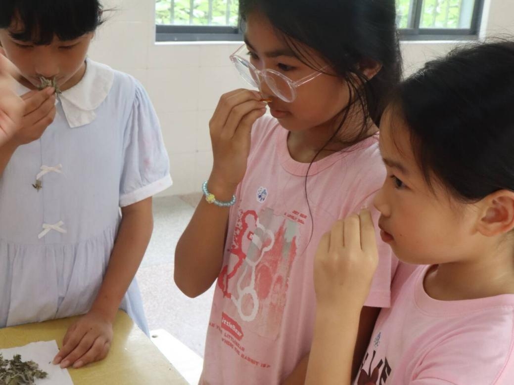 課堂上教小朋友們識別中草藥 支教活動里,趣味中藥知識課堂成最大亮點。三下鄉(xiāng)志愿者以生動講解搭配互動游戲,把晦澀中藥知識變得童趣滿滿,帶著孩子們認(rèn)識常見中藥、了解功效,在他們心里種下中醫(yī)藥文化的種子。手工制作課程同樣精彩,孩子跟著志愿者用艾草、布料等材料,親手制作香囊與艾條。穿針引線間,不僅鍛煉動手能力,更讓傳統(tǒng)中醫(yī)藥文化,借由指尖溫度傳遞開來,孩子們捧著成品,自豪與喜悅洋溢在臉上。