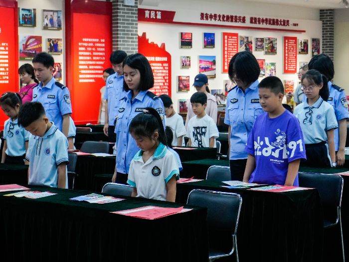 “間諜可能像藏在糖果里的刺!”7月10日上午,動畫短片揭開反間諜教育序幕。反間諜法講解中,“12339舉報電話”被反復強調,情景劇里“間諜拍攝軍事設施”的劇情剛上演,就被孩子們齊聲制止,全場齊誦舉報電話,讓安全意識深植童心。