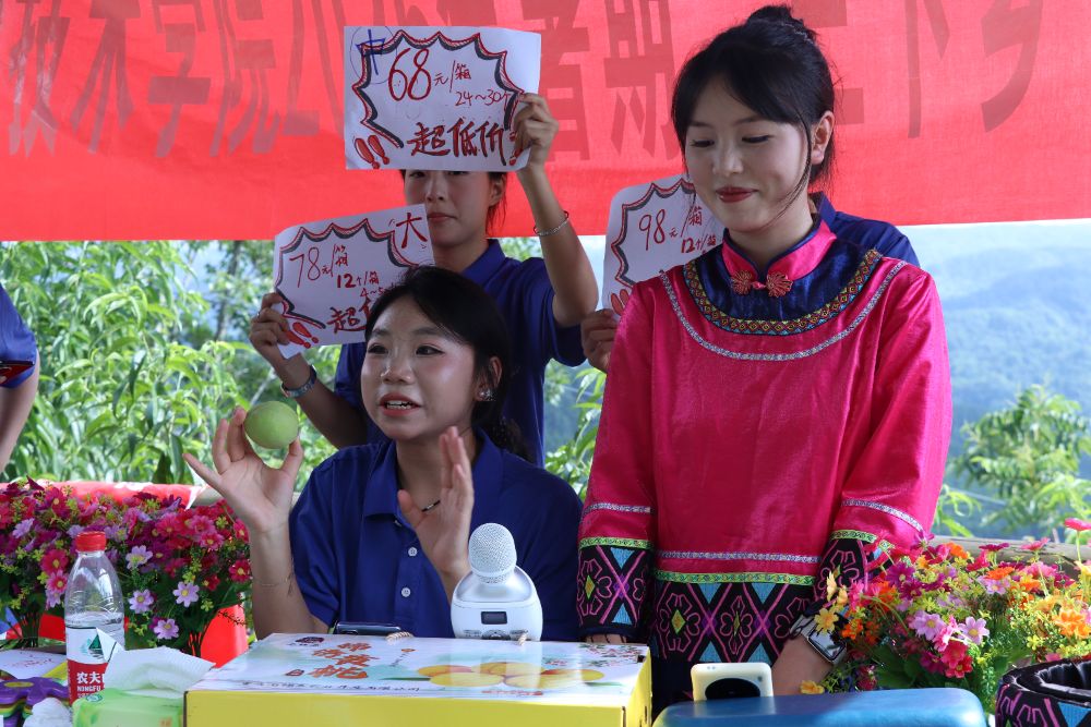 第二站 團(tuán)隊(duì)采訪了當(dāng)?shù)貍涫茏鹁吹拇妩h支部書記 村委會(huì)主任江扶仕 深入了解其帶領(lǐng)多民族群眾共同發(fā)展的奮斗歷程 江書記熱情地與團(tuán)隊(duì)成員們分享了他在基層工作多年的心路歷程 面對(duì)土家族與漢族群眾早期的觀念差異 扶江仕通過(guò)開辟公共活動(dòng)空間 組織互助交流 逐步營(yíng)造我們是一家的團(tuán)結(jié)氛圍 在資源分配上 他堅(jiān)持公平原則 確保各族群眾共享發(fā)展成果 任職34年來(lái) 扶江仕帶領(lǐng)村民完成基礎(chǔ)設(shè)施改造 將泥濘土路變?yōu)橛不?并發(fā)展藥材種植和特色水果產(chǎn)業(yè) 打造了黃桃 李子等優(yōu)質(zhì)農(nóng)產(chǎn)品品牌 扶書記還提到今年由于天氣原因 當(dāng)?shù)攸S桃可能會(huì)出現(xiàn)滯銷的問(wèn)題 因此 團(tuán)隊(duì)主動(dòng)提出通過(guò)直播帶貨助力銷售 當(dāng)天下午 團(tuán)隊(duì)成員們拿著直播設(shè)備 走進(jìn)生機(jī)勃勃的黃桃種植園內(nèi) 借助互聯(lián)網(wǎng)推廣起當(dāng)?shù)氐奶厣r(nóng)產(chǎn)品石桶寨錦繡黃桃 直播過(guò)程中 團(tuán)隊(duì)成員詳細(xì)講解黃桃的種植過(guò)程 口感特點(diǎn)及營(yíng)養(yǎng)價(jià)值 并不時(shí)與觀眾互動(dòng)答疑 這場(chǎng)持續(xù)兩小時(shí)的直播活動(dòng)吸引了1100余名網(wǎng)友在線觀看 訂單量顯著提升 為幫助果農(nóng)建立長(zhǎng)效銷售機(jī)制 團(tuán)隊(duì)還幫果農(nóng)在售賣小程序上注冊(cè) 上架該商品 該小程序具備商品展示 在線下單 物流查詢等功能 極大地方便了后期的銷售管理 直播結(jié)束后 果農(nóng)們對(duì)團(tuán)隊(duì)的工作給予了高度評(píng)價(jià) 紛紛表示大學(xué)生們不僅打開了新的銷售渠道 更為農(nóng)產(chǎn)品電商化發(fā)展提供了技術(shù)支持 看著不斷增加的訂單 果農(nóng)們臉上洋溢著喜悅的笑容 對(duì)未來(lái)的銷售前景充滿信心