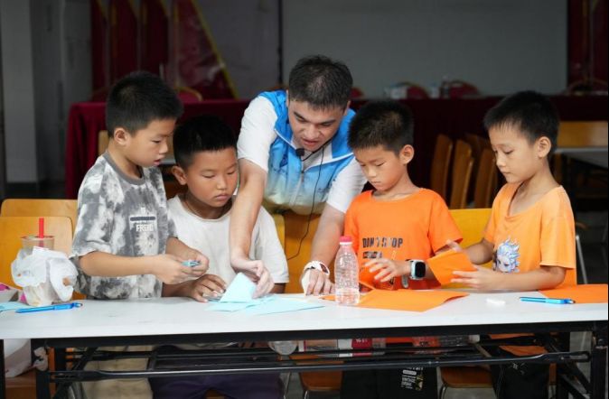 小老師正在教孩子折紙 團(tuán)隊成員 崔家峪 張楊錦 攝