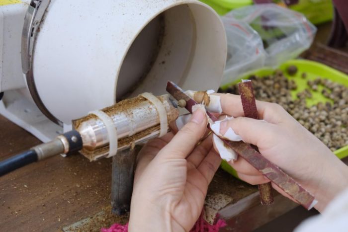 商戶正在加工沉香鏈珠 團(tuán)隊成員 崔家峪 張楊錦 攝
