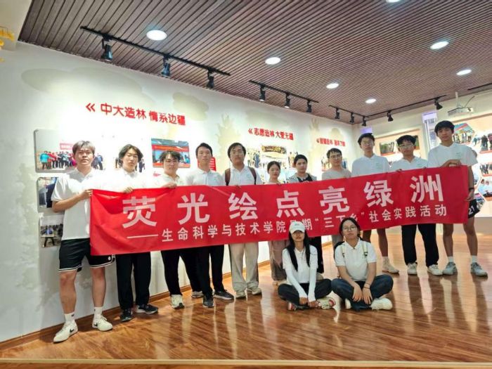 隨后,實踐團走進麥蓋提縣生態林展示館,在防沙治沙中心干部王姣姣的細致講解下,系統學習當地的治沙技術體系與產業發展模式。在“生態林鎖邊”“工程治沙”等展區,隊員們通過豐富的展板展示,深入了解到治沙人運用網格固沙、飛播造林、節水灌溉等科學手段,實現流沙固定、植被恢復的技術路徑,對治沙技術的不斷創新與發展表示由衷的贊嘆。在梭梭、肉蓯蓉等沙生植物培育區,實踐團成員們探究了沙生植物從適應沙漠環境的自然育種,經過人工選育、技術賦能,轉化為兼具生態固沙功能與經濟開發價值資源的全過程,深刻認識到科技在治沙工作中的重要作用。
