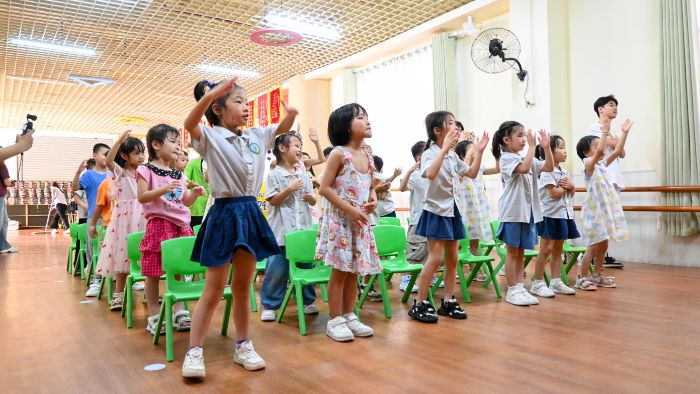 幼兒園小朋友們跟隨實踐隊成員學習交通安全操