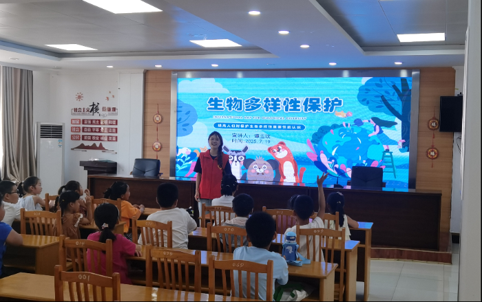 志愿者譚玉玟的生物多樣性科普課,從“人類(lèi)與生物相互依存”的概念切入,用生動(dòng)案例講解生物多樣性的直接價(jià)值、間接價(jià)值和潛在價(jià)值。當(dāng)講到生物多樣性銳減的現(xiàn)狀及棲息地破壞、環(huán)境污染等原因時(shí),孩子們臉上露出擔(dān)憂;而在討論“如何保護(hù)生物多樣性”時(shí),大家積極獻(xiàn)策,從“節(jié)約用紙”到“不傷害小動(dòng)物”,稚嫩的想法里滿是對(duì)自然的珍視。