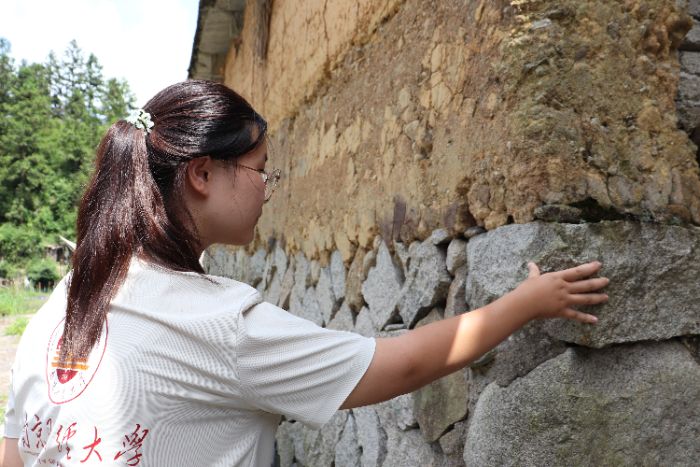 圖為團隊成員觸摸石墻的觸覺調研 周雪雪 供圖