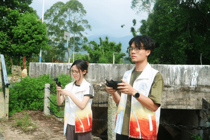 (圖為實踐團正在用無人機拍攝黎雄村村落景色 黃曉惠 供圖)