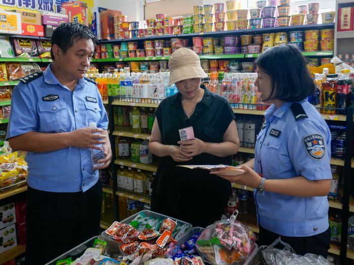 圖為成員們與城南莊派出所民警合作開展國防普法宣傳(張境軒 羅上杰供圖)