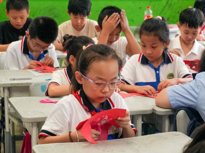 圖為孩子們體驗非遺剪紙(張境軒 羅上杰供圖)