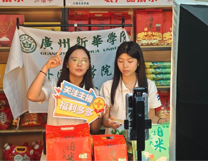(圖為實(shí)踐隊(duì)成員直播推廣農(nóng)產(chǎn)品) 此次實(shí)踐成效顯著:累計(jì)超16小時(shí)的直播,吸引近2000人觀看,獲12.9萬(wàn)點(diǎn)贊,帶動(dòng)“禾香念”品牌產(chǎn)品曝光超1.1萬(wàn)次;12條原創(chuàng)視頻播放量達(dá)3萬(wàn)次,19篇實(shí)踐推文閱讀量近3700次。這些數(shù)據(jù)不僅讓五云鎮(zhèn)的農(nóng)產(chǎn)品被更多人知曉,更實(shí)實(shí)在在地展現(xiàn)出青春力量給鄉(xiāng)村帶來(lái)的真切變化。