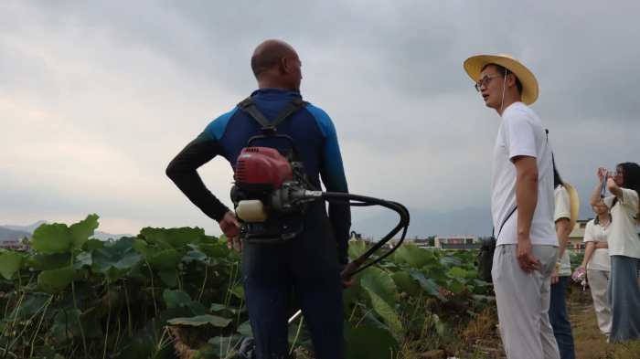 圖為實踐隊員與當地藕農交流