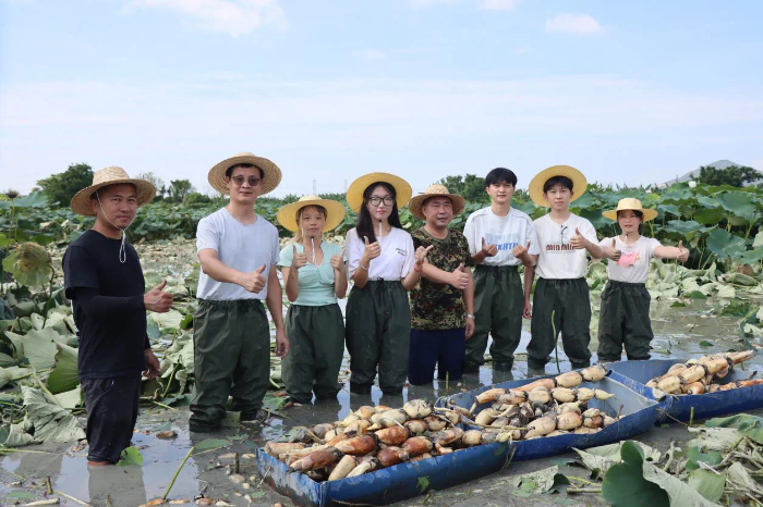 青春力量激活產業新動能 這個暑期,駐梅隴鎮幫鎮扶村工作隊充分發揮“橋梁紐帶”作用,精準整合高校人才與地方發展需求,與實踐隊攜手為傳統農業村——高中村的蓮藕產業注入澎湃動能,探索特色農業提質增效、可持續發展的振興新路。曾基礎設施薄弱、以傳統農業為主的高中村,在鄉村振興工作隊支持下,村容村貌顯著提升,蓮藕產業化種植成為帶動農業企業、合作社和農戶增收的重要引擎。為深化這一成果,工作隊組織村“兩委”干部、黨員代表、致富能手及村民代表與實踐隊深入座談,凝聚“品牌打造、電商孵化、農旅融合”的發展共識。廣東交通職業技術學院學子迅速將智慧轉化為行動,精準對接需求,投入高中脆藕IP形象設計、特色產品包裝升級、沉浸式藕田體驗項目開發,并引入電商直播與AI辦公技能培訓等創新舉措,以青春創意激活鄉土資源潛能,為鄉村發展注入新活力。