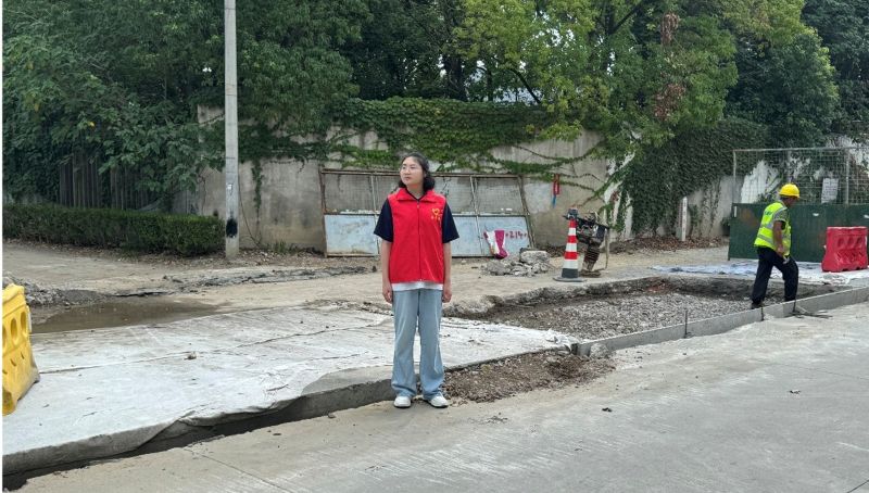 實踐期間,實踐團不僅是發展的觀察者,更是治理的參與者。橫林鎮鄉村旅游升溫,游客增多,而部分路段施工改造,通行秩序受影響。成員們身著紅馬甲,在施工現場堅守,他們的身影成為橫林鎮街頭一道亮麗的風景線,不僅保障了交通的順暢,也提升了游客對橫林鎮的印象分,以實際行動踐行 ESG 理念中的社會責任。