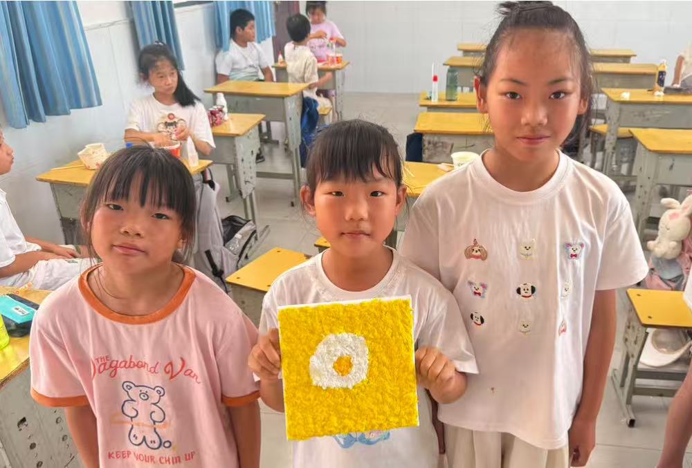 兩周的活動結束時,孩子們舉著自己制作的漆扇合影,臉上帶著明顯的喜悅。通過這四堂美術課,讓鄉村兒童在動手實踐中接觸了不同的藝術形式,體驗了創作的過程。這些與色彩、線條、協作相關的經歷,或許會在他們心里留下印記,為他們未來接觸更廣闊的藝術世界埋下一顆小小的種子。