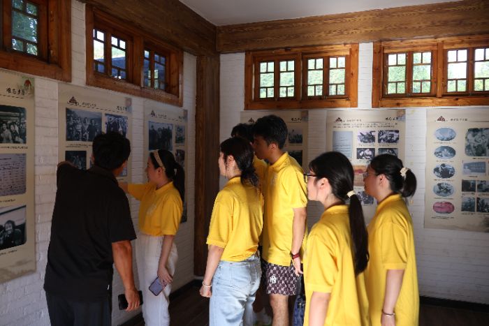 講解員的聲音沉穩而深情,將毛澤東同志在此期間居住的革命故事娓娓道來,深夜伏案起草的專注、深入群眾的身影、與同志研討時局的熱忱......那些平凡生活中的點滴,串聯起一段段波瀾壯闊的革命記憶。成員們屏氣聆聽,目光不時在展品上駐足凝視,仿佛穿越了時空的阻隔——眼前似乎浮現出昏黃燈光下,毛澤東同志在艱苦環境中為革命事業日夜操勞的身影,那緊握筆桿的手,那思索時緊鎖的眉,都清晰得仿佛就在眼前。