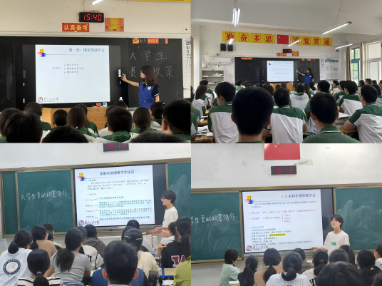 母校反哺深,薪火照前路。7月底,團隊成員丁古澤、黃子洋分別重返母校濱海縣東元高級中學、江蘇省運河中學,為學弟學妹們帶去了別開生面的資助政策宣講活動,用青春力量架起政策傳遞與夢想接力的橋梁。宣講現場,兩位成員以“政策解讀+成長故事”為雙主線,讓嚴肅的政策條文變得鮮活可感。他們系統梳理了國家獎助學金的評定標準、助學貸款的申請流程、新生入學“綠色通道”的具體內容等核心要點,針對“成績中等能否申請助學金”“貸款還款期限如何設定”等學弟學妹們關心的細節問題,結合自身經歷逐一解答。通過母校反哺的方式,讓資助政策以更貼近、更可信的姿態走進學生心中,更讓奮斗的火種在代代學子間薪火相傳,為更多追夢人照亮前行之路。