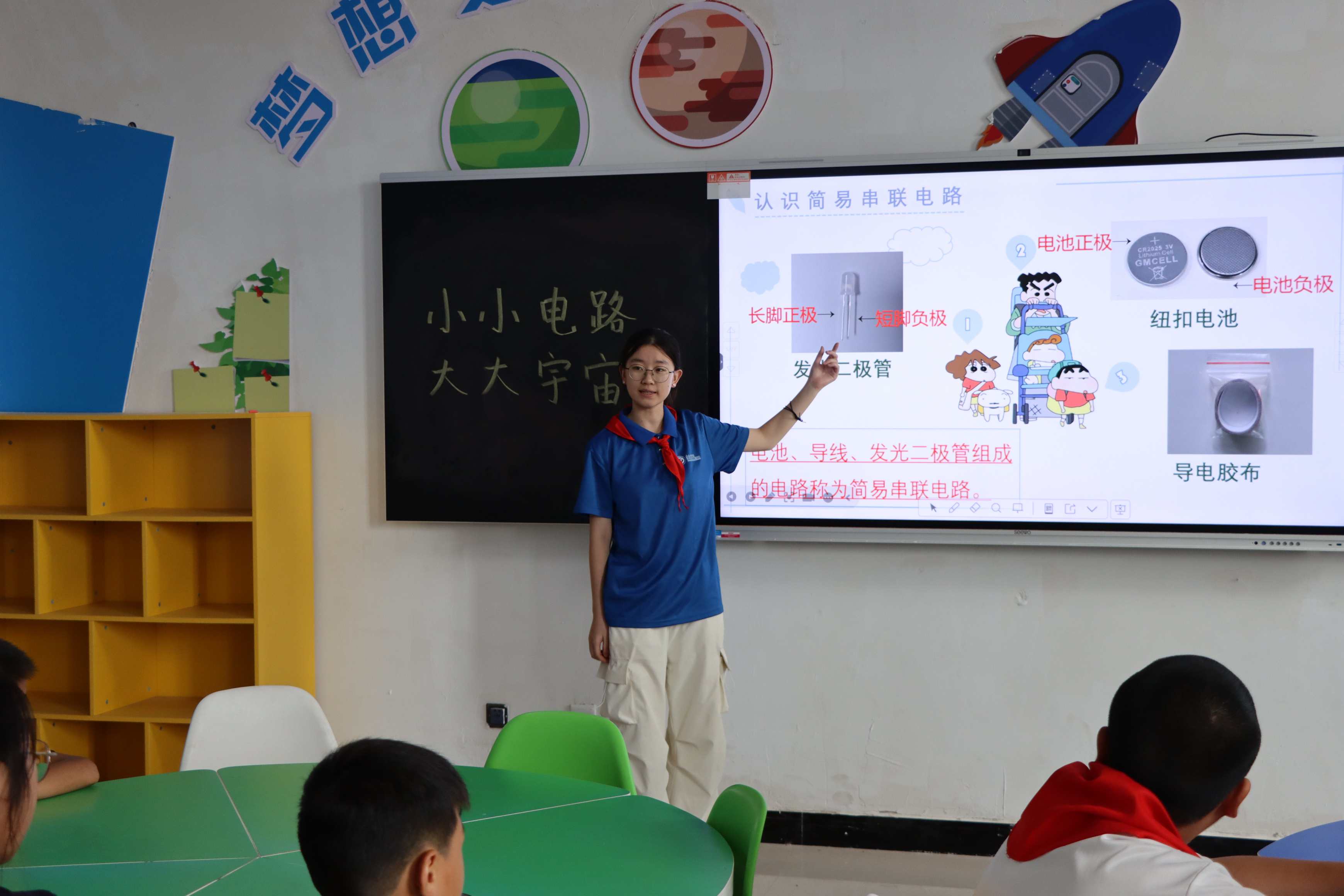 圖為實踐團成員在向同學們講解紙電路的原理