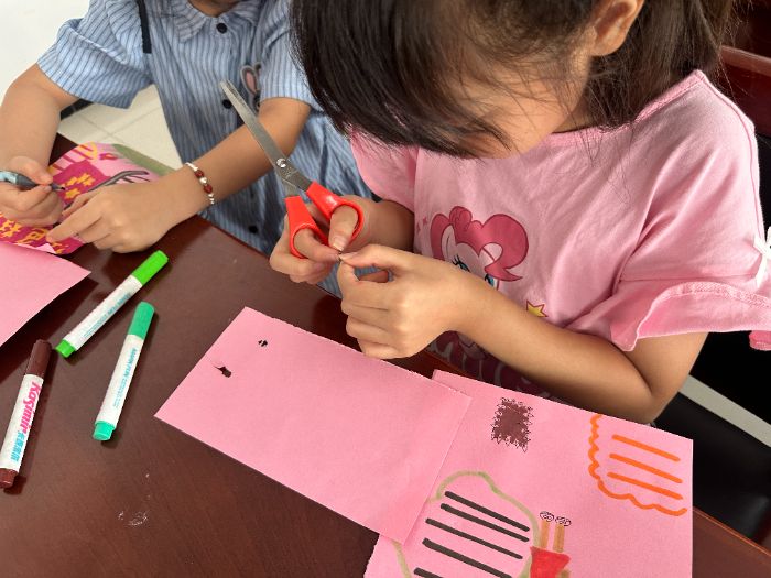 8月6日,實(shí)踐成果走進(jìn)城市生活圈。在天津市華亭里社區(qū)黨群服務(wù)中心,團(tuán)隊(duì)成員整合了圣地探訪的見聞、支教與夏令營的經(jīng)驗(yàn),面向社區(qū)兒童,開展了一場別開生面的多語種紅色文化宣講。活動包含中、英、日多語故事講述、趣味外語互動問答,以及融入紅色主題的沉浸式手工繪畫環(huán)節(jié)。一位家長反饋:“這種形式很吸引孩子,在動手動腦中不知不覺就學(xué)到了知識,感受到了正能量。”這次社區(qū)宣講標(biāo)志著實(shí)踐團(tuán)創(chuàng)新模式的成功推廣,讓紅色文化以青春語態(tài)飛入更廣泛的尋常百姓家。