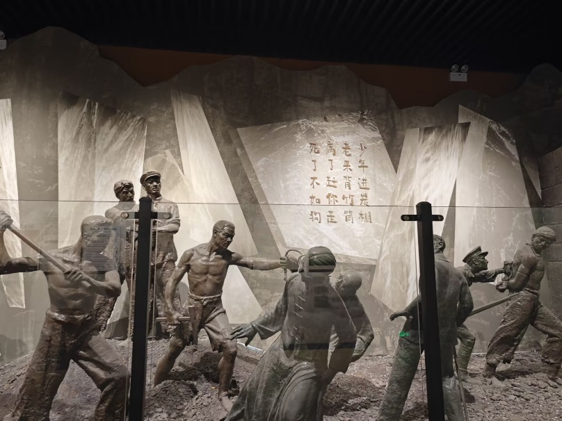 館內,一組組雕塑、一幅幅浮雕生動再現工運場景:緊握礦燈與鐵錘的雙手雕塑,傳遞著工人階級的力量與希望;“組織工人階級、成立產業工會、領導工人運動”主題雕塑,還原革命先輩奔走呼號、凝聚力量的畫面;“少年進炭棚,老來背竹筒……死了不如狗”的血淚控訴,揭露舊時代礦工的苦難,更點燃抗爭的怒火。這些具象化的歷史呈現,讓隊員們觸摸到革命先輩為爭取權益、反抗壓迫的熾熱初心。