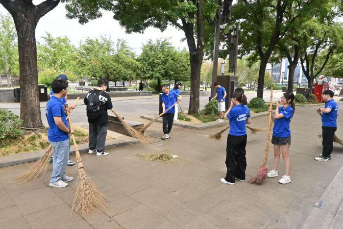 此外,文化的傳播和保護更需要從其生態(tài)環(huán)境開始。隊員們毫不猶豫地挽起衣袖,與景區(qū)工作人員攜手投入到南廣場的環(huán)境整治工作中。烈日高懸,酷熱難耐,但他們沒有絲毫退縮。隊員們仔細搜尋著每一個角落,不放過任何一個煙頭、一片紙屑、一個廢棄塑料瓶。他們用雙手一點點清理著雜物,用汗水澆灌著這片文化圣地。經(jīng)過數(shù)小時的辛勤努力,南廣場煥然一新,整潔有序的環(huán)境與大雁塔的古樸莊重相得益彰,共同勾勒出一幅美麗的盛唐畫卷。