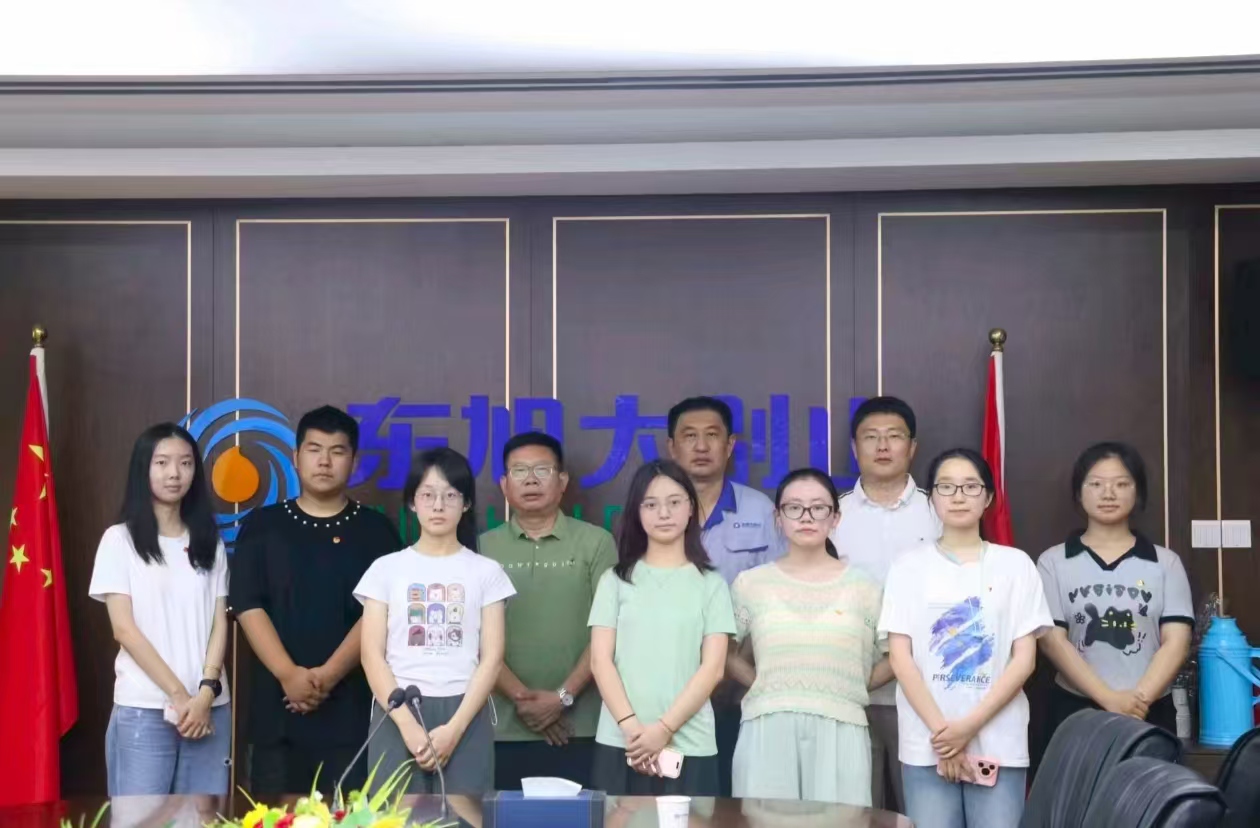 圖為實(shí)踐隊(duì)成員與東旭大別山產(chǎn)業(yè)園負(fù)責(zé)人合影