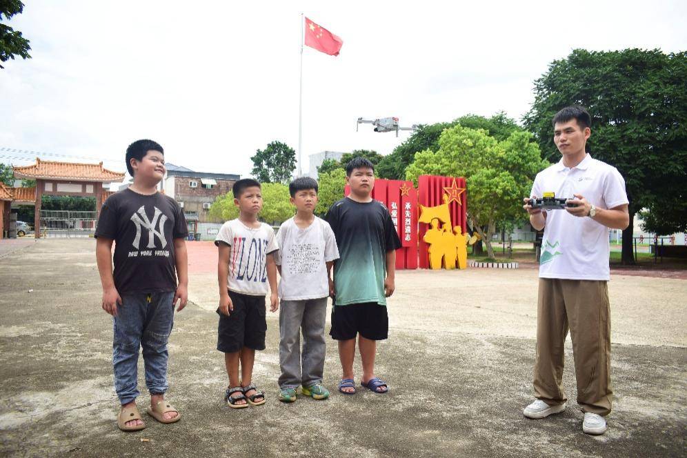 智育賦能:播撒科技火種,夯實鄉(xiāng)村振興根基 團隊為學生開設沉浸式人工智能科普課,通過深入淺出的講解與AI工具實操、數(shù)字人互動等體驗,揭開AI神秘面紗,點燃孩子們的探索熱情。操場無人機體驗區(qū)氣氛熱烈,在隊員指導下,孩子們輪流操控無人機完成起飛、懸停等動作,親身體驗“空中精靈”操控,激發(fā)對航空科技的好奇。此外,“蘇打遇醋滅火燭”趣味實驗以直觀現(xiàn)象詮釋二氧化碳滅火原理,簡易操作既激發(fā)探索科學原理的興趣,更助力科學素養(yǎng)提升,為鄉(xiāng)村培育科技火種,夯實長遠發(fā)展根基。
