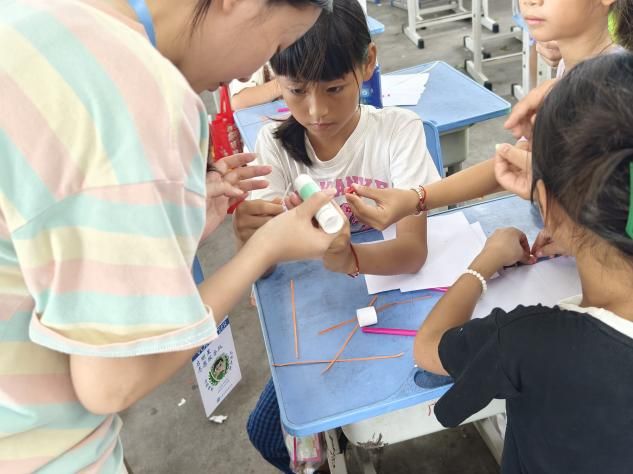 美育教育類課程則為孩子打開藝術之窗。7月7日的“光影魔術師”課堂,志愿者用玻璃紙、透明塑料片等道具,讓孩子通過“光影繪畫”感受光與影的奇妙;7月8日的花生主題國畫體驗,使孩子在筆墨間浸潤傳統文化韻味;7月9日的樹葉拓印課,引導孩子采集校園樹葉創作,在摩擦葉脈紋理中發現自然之美;7月10日的鹽畫與衍紙手工課堂,從鹽粒創作出的獨特肌理,到紙條卷曲粘貼成的創意作品,既鍛煉孩子動手能力,更讓他們體會手工藝術的魅力。