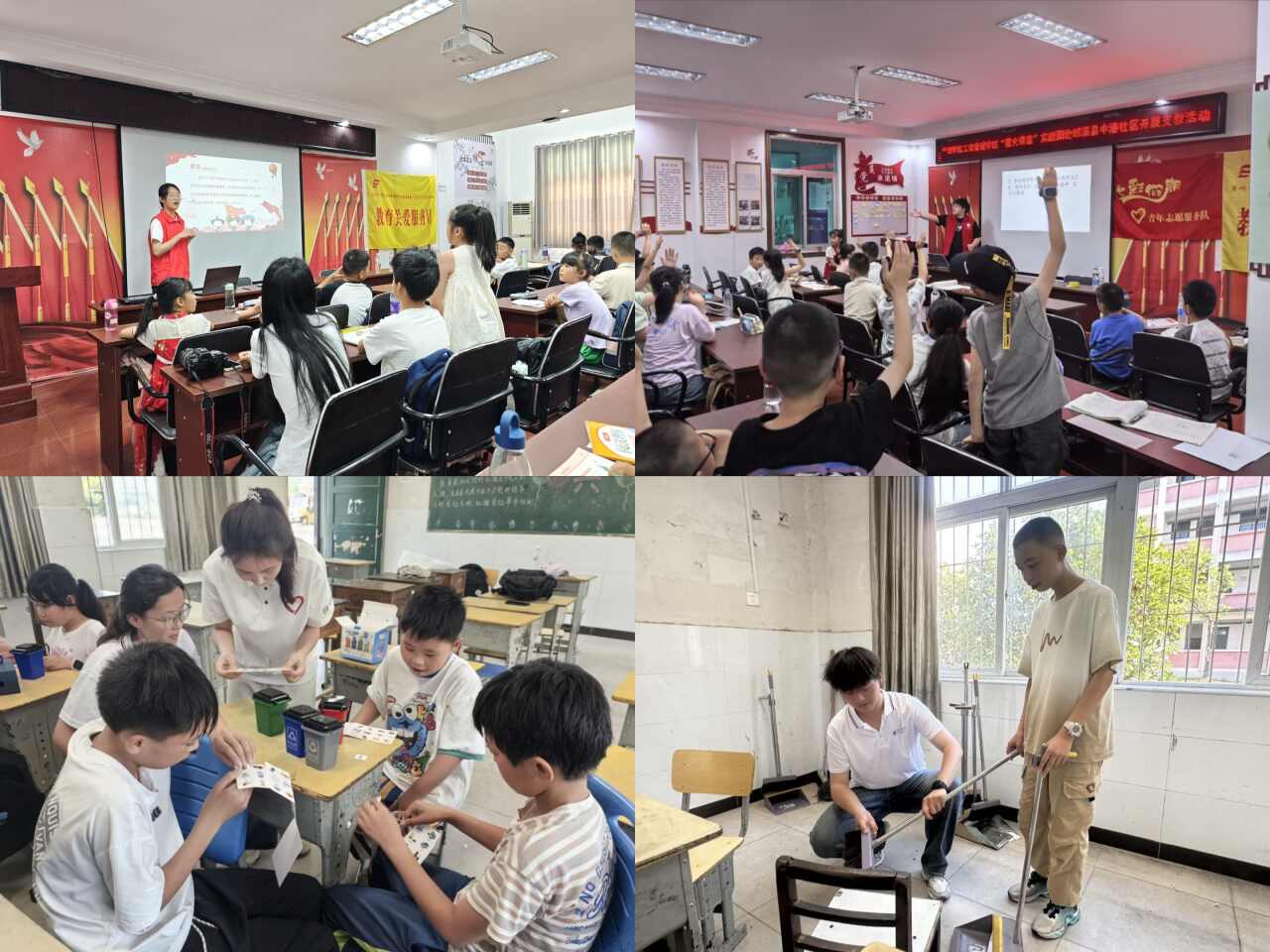 思想是行動的先導,實踐團著力加強對孩子們的思想引導,助力他們樹立正確三觀。愛國主義教育中,“我和我的祖國”小課堂引領孩子們感悟歷史底蘊,紅色故事與影片激發愛國熱忱,讓家國情懷深深扎根;“勞動最光榮”專題活動從家庭勞動到教室整潔,讓孩子們在汗水中體會勞動價值,懂得勞動創造美好生活的真諦;文明素養培育則通過“美麗家園我行動”倡導垃圾分類與環境清潔,孩子們化身“環保小衛士”守護身邊環境。在這些活動中,孩子們深刻體悟到愛國、勞動、文明的分量,前行的腳步也因明確的方向而愈發堅定。