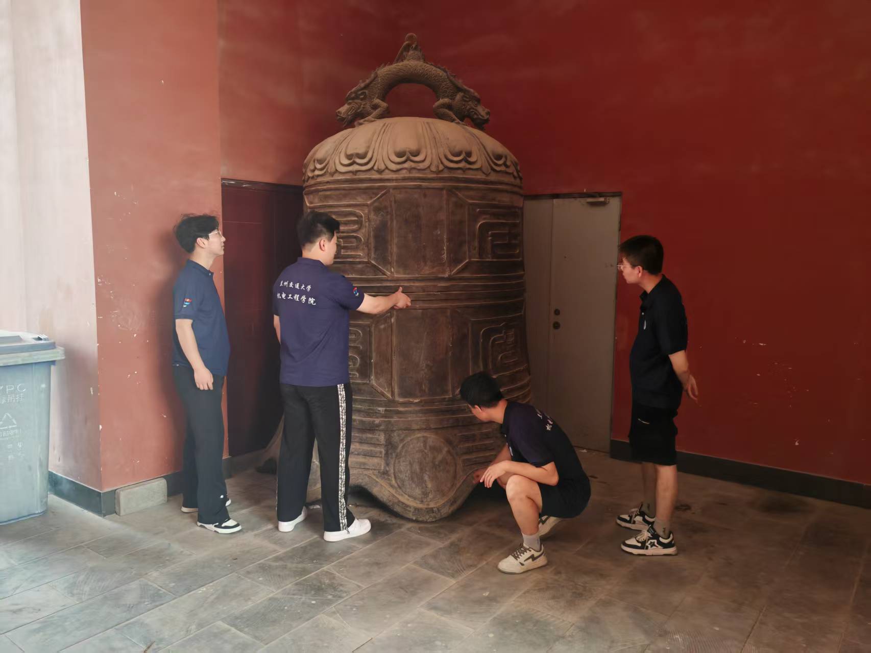 會寧“地控三邊,縣居四塞”,素有“秦隴鎖鑰”之稱,是古絲綢之路重鎮,是省級歷史文化名城。會寧縣博物館,鐘鼓樓,祖厲河均是會寧歷史的見證。會寧鐘鼓樓是會寧八景“晨鐘暮鼓”傳統文化景觀的延續,是縣城標志性建筑之一,該鼓樓由蘭州交通大學設計,為六層框剪結構仿古建筑,飛檐斗拱,雕梁畫棟,古樸而莊重。迎著微風,實踐團沿著臺階緩緩走近鼓樓,撫摸著鼓樓的墻壁,那一道道紋理,就像歷史的皺紋;那懸掛的銅鐘,仿佛在訴說時光的流轉和歲月的更迭。成員們仔細觀摩鐘鼓樓的構造和設計,深深的被中國古代歷史文化的魅力所折服,站在會寧這片充滿歷史的土地上,站在會寧鼓樓這個歷經滄桑的建筑前,成員們都深有感觸。