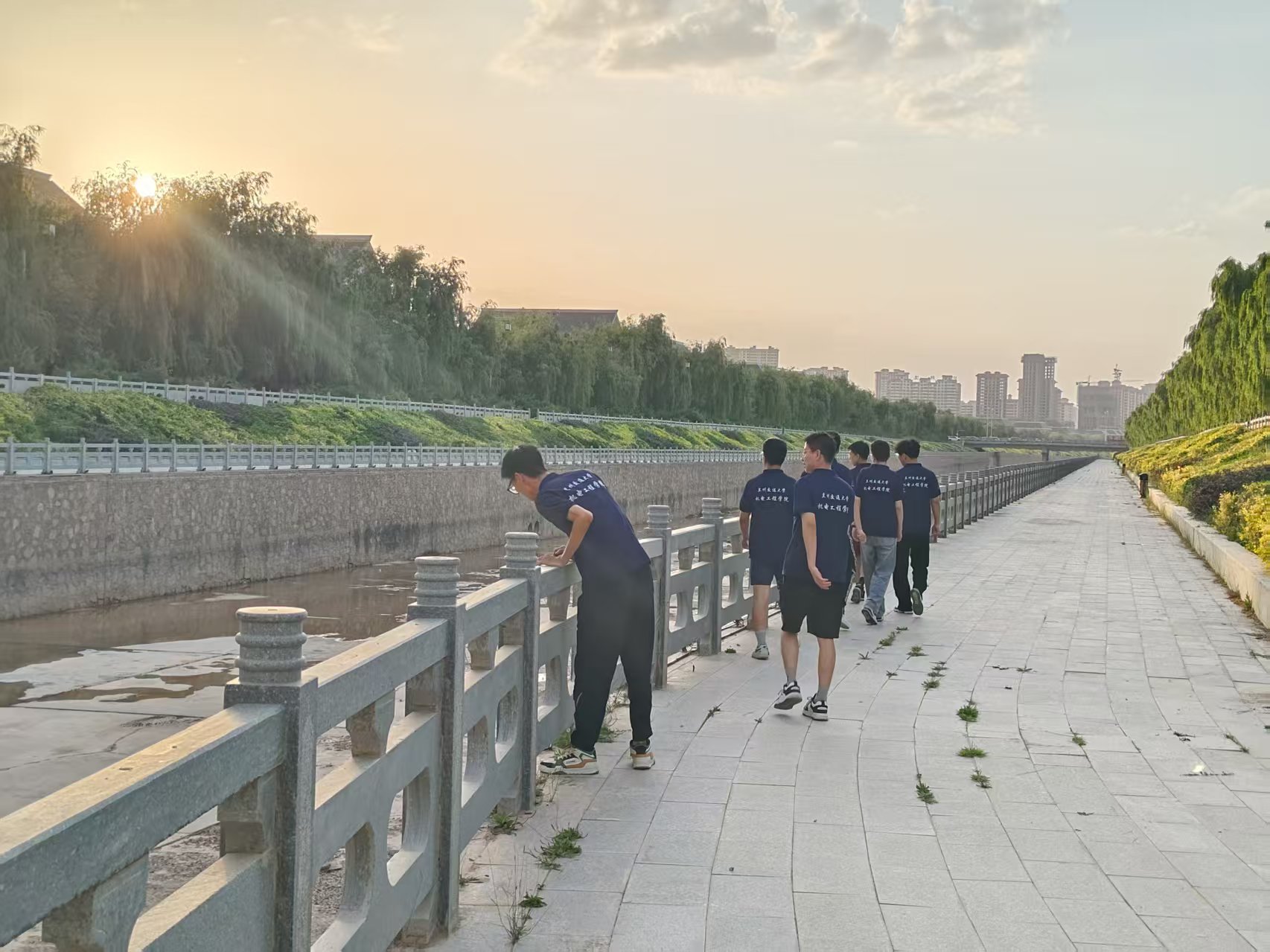 在會寧鐘鼓樓的四邊,環繞著當地的母親河--祖厲河,祖厲河由祖河和厲河匯合而成,流經會寧境內,滋養了兩岸土地。在古代,它是區域內農業灌溉的重要水源,支撐著當地農耕文明的發展,見證了會寧歷史的變遷。在近代,祖厲河也曾是紅軍活動的區域,它也承載著那段革命歲月的記憶,成為了會寧紅色文化一部分。走在祖厲河旁,視線被岸邊的景象所牽動,部分河段的河床裸露出大片沙石,偶有塑料袋和水瓶掛在枯草上,成員們不自覺放慢腳步,自發的去撿起岸邊的垃圾,大家也在為環境保護貢獻出自己微薄的力量。