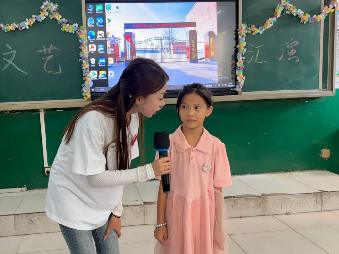 文藝匯演成為此次實(shí)踐的成果展示。在教室搭建的簡易展示區(qū),孩子們主動登臺,通過模擬主持展現(xiàn)播音課收獲,舉起手繪扇子分享手工成果,還跳起舞蹈課上學(xué)到的舞蹈,用行動展現(xiàn)了三天來的成長與蛻變,集中體現(xiàn)了此次實(shí)踐活動“以文化人、以美育心”的教育成效。學(xué)生通過舞臺展現(xiàn)自我成長與藝術(shù)表達(dá),生動反映了其綜合素質(zhì)的提升和內(nèi)在自信的建立,也讓整個(gè)實(shí)踐在掌聲與笑容中圓滿落幕。“冀翼童心”社會實(shí)踐團(tuán)隊(duì)通過深入基層開展美育浸潤實(shí)踐,探索出高校服務(wù)鄉(xiāng)村教育的新路徑。團(tuán)隊(duì)將專業(yè)實(shí)踐與價(jià)值引領(lǐng)相融合,以美育浸潤和情感陪伴為載體,為留守兒童成長注入溫暖力量,彰顯了實(shí)踐育人與思政教育相統(tǒng)一的育人實(shí)效。此次活動不僅促進(jìn)了優(yōu)質(zhì)教育資源向基層的有序輸送,更是一堂生動的“思政大課堂”,使青年學(xué)子在服務(wù)奉獻(xiàn)中深化了對基層實(shí)際的認(rèn)知,筑牢了理想信念根基。團(tuán)隊(duì)將持續(xù)推進(jìn)校地合作,以傳媒藝術(shù)專業(yè)特色賦能鄉(xiāng)村美育,不斷完善實(shí)踐育人長效機(jī)制,為培養(yǎng)德智體美勞全面發(fā)展的社會主義建設(shè)者和接班人貢獻(xiàn)青春力量,展現(xiàn)了新時(shí)代青年服務(wù)國家、奉獻(xiàn)社會的使命擔(dān)當(dāng)。