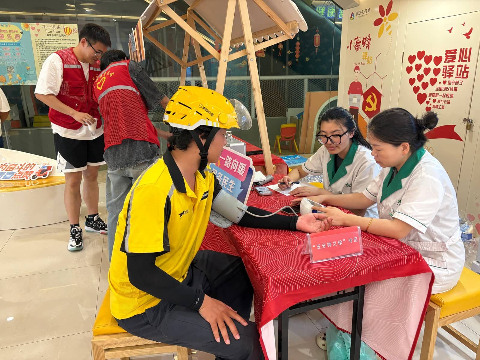 七月的無錫持續高溫,午后路面溫度常超35℃。戶外工作者們頂著烈日作業,補水、降溫成了急需。補給站里,韋志勛每天提前到崗,整理礦泉水、藿香正氣水等物資,檢查藥品保質期。7月23日,一位環衛工李阿姨因高溫頭暈,他及時遞上清涼油和溫水,協助休息緩解。“這些孩子在,我們心里踏實多了。”李阿姨的話道出了不少戶外工作者的感受。