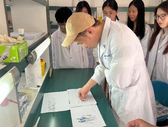 (一)實踐學技:掌握驗孕試紙原理與操作實踐期間,隊員們系統學習了驗孕試紙的檢測原理與實驗操作技術。企業技術人員詳細講解了試紙基于抗原抗體反應的檢測機制,演示了從樣品墊到吸水墊的全流程操作規范。在技術員指導下,隊員們親手開展對照實驗,精準控制濃度梯度與環境變量,深刻體會到生物檢測領域"失之毫厘,差之千里"的嚴謹性。"這些在實驗室里看似簡單的操作,在實際生產中卻關系到千萬家庭的健康需求,"化學化工專業的隊員在實驗結束后感慨道,"這讓我們對專業價值有了全新的認識。