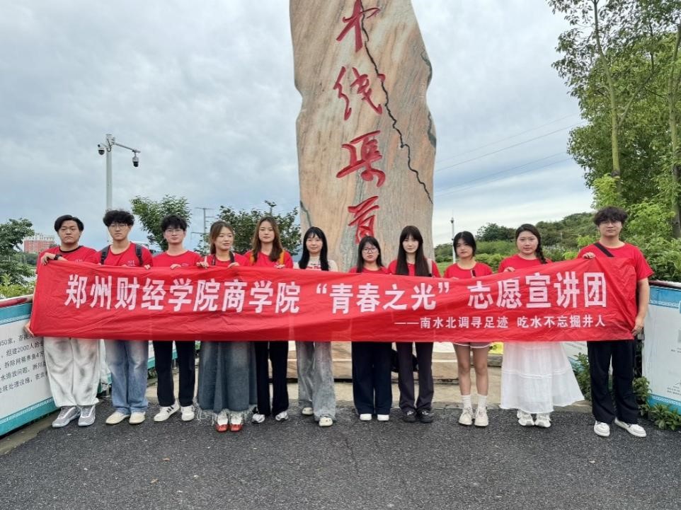 “青春之光”啟程,探尋精神根脈2025年6月25日至7月1日,鄭州財經學院商學院“青春之光”南水北調精神志愿宣講團11名師生深入南陽市淅川縣,以七天沉浸式實踐解碼南水北調精神密碼。宣講團借助南水北調精神宣傳頁等系列宣傳材料,以通俗語言講述南水北調故事,拉開了研學序幕。