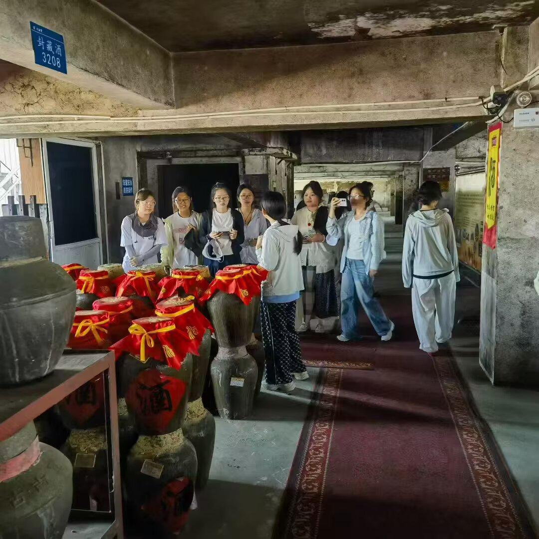 離開文化館后,實踐團深入工廠生產車間與儲物車間,實地觀摩黃酒釀造全流程。在釀造車間,現代化的自動蒸米設備與傳統的陶缸發酵區形成鮮明對比。在儲物車間,一排排整齊擺放的酒壇散發著醇厚的酒香,隊員們了解到黃酒的儲存條件對其口感和品質有著重要影響。“黃酒的儲存環境需要恒溫恒濕,包裝設計必須考慮防潮、避光等功能性需求。” 工廠技術負責人的一句話,讓隊員們對設計方向有了更清晰的認知。