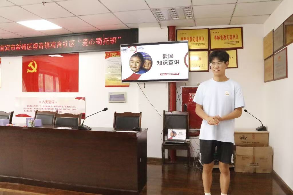(圖為志愿者為蜀托班小朋友進行愛國知識宣講。彭泓源供圖)