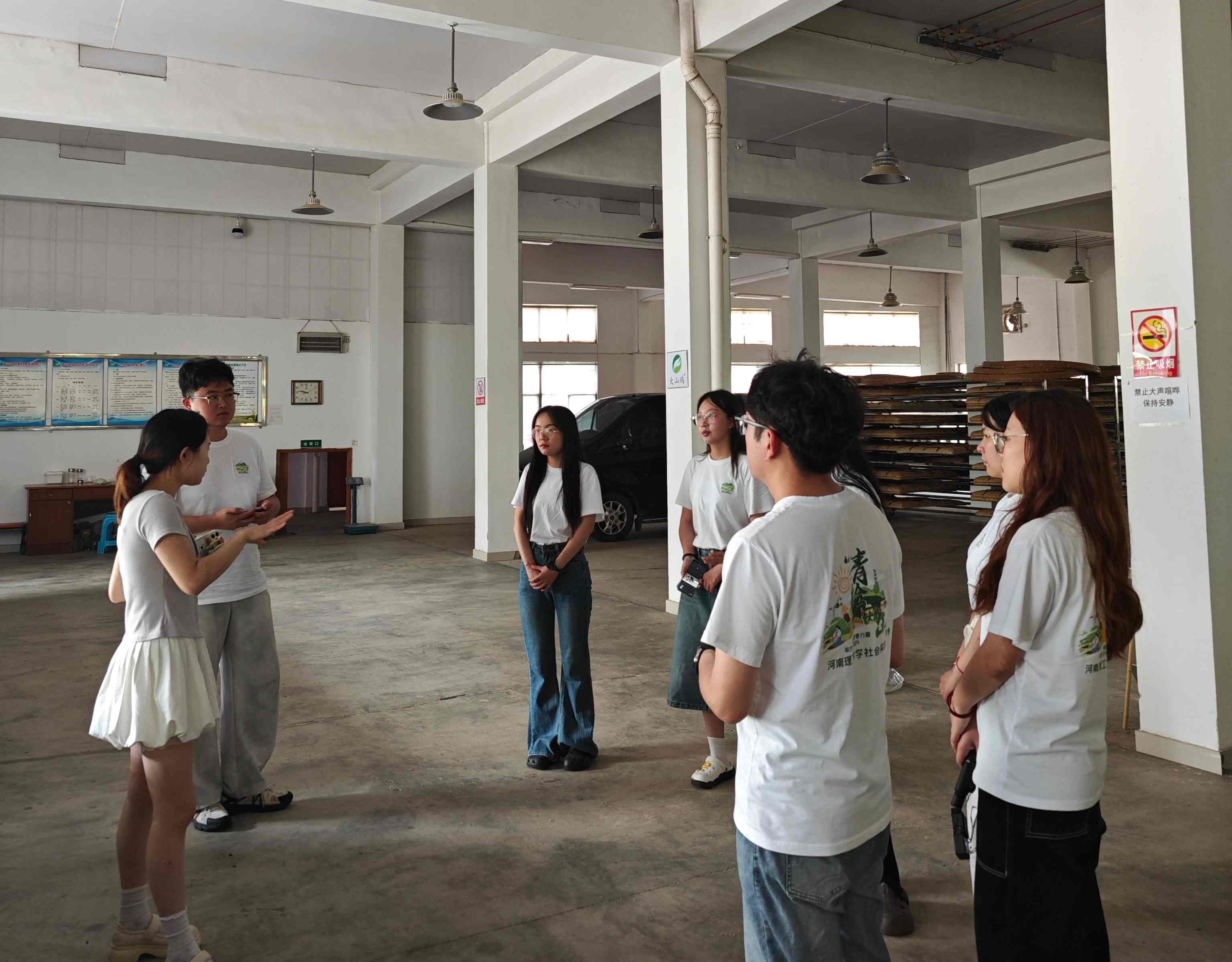 圖為實踐團成員參觀制茶車間+團隊攝