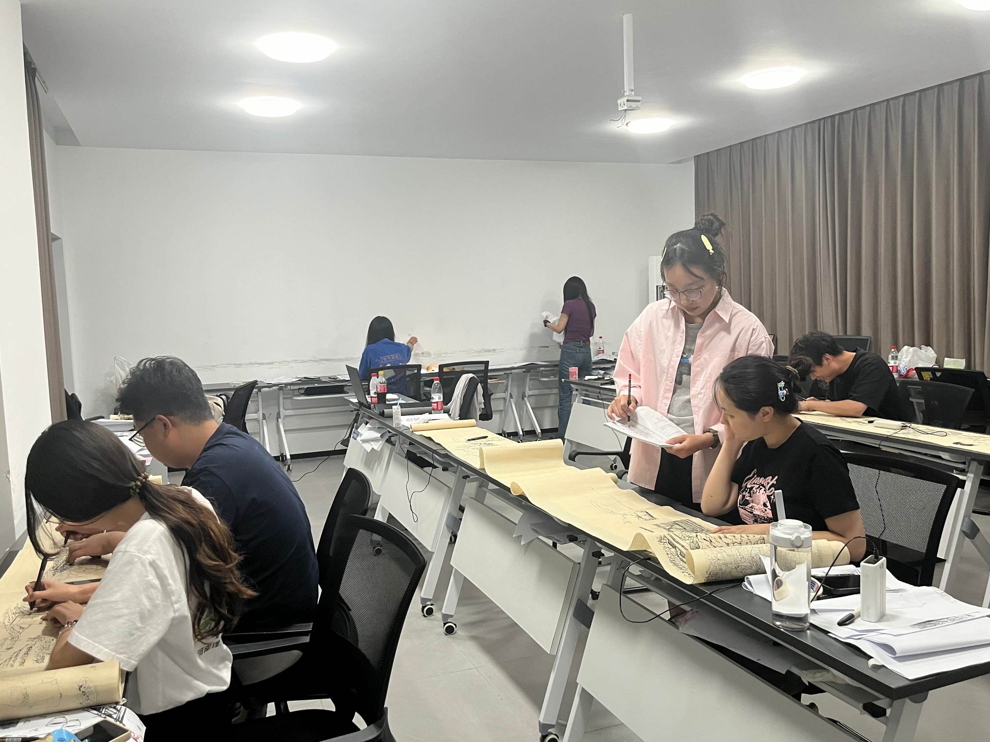 圖為團隊成員繪制百米長卷情景+團隊攝