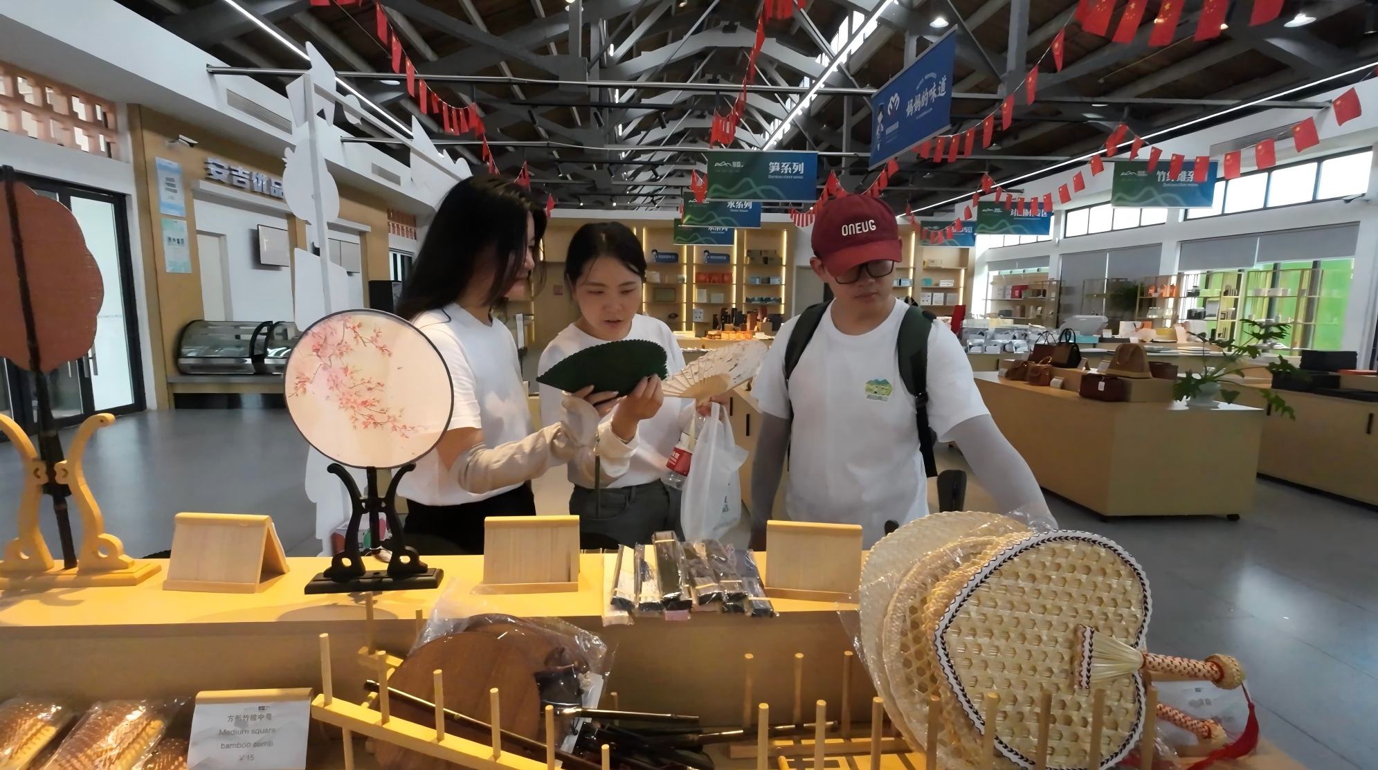 圖為實踐團成員參觀“以竹代塑”館+團隊攝