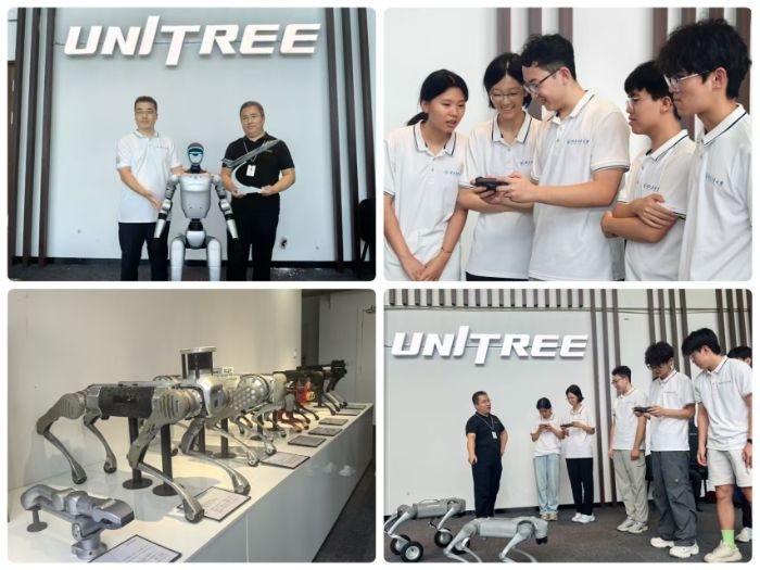在宇樹科技,校園招聘總監亢志華向實踐隊員系統梳理了公司產品的迭代歷程?;迎h節中,隊員們親自操控宇樹科技的機器狗,領略前沿成果魅力。隊員們還就技術細節與技術專家展開深入交流——從運動控制算法到信號傳輸實現,并針對網絡安全專業需求,探討了機器人技術在防護領域的應用前景。