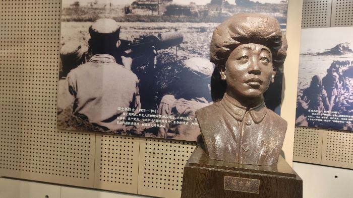 當看到展柜中梁士英炸地堡的爆破筒殘片時,展柜的射燈溫柔而莊重地籠罩著那片銹跡斑斑的爆破筒殘片,金屬表面凹凸不平的痕跡里,仿佛還留存著七十多年前那場激烈戰(zhàn)斗的硝煙氣息。講解員詳細介紹了梁士英烈士的英勇事跡。梁士英(1922-1948),東北人民解放軍第 2 縱隊戰(zhàn)士,吉林扶余人,1946 年參軍,共產(chǎn)黨員,1948 年 10 月在錦州戰(zhàn)役中,舍身炸地堡,為部隊開辟前進道路,被追認為特等功臣。烈士的壯舉讓在場的每一位實踐團成員都深受震撼,內(nèi)心充滿對革命先烈的崇敬。
